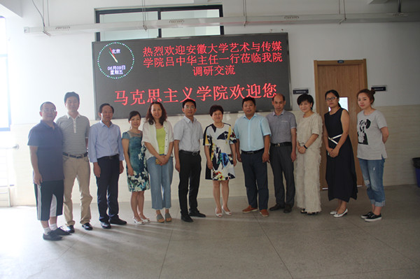 6月9日上午,安徽大学艺术与传媒学院公共教学部和思政教研部吕中华一行4人来马克思主义学院调研交流。院党政负责人胡卿、董玉节,各教研室主任,正高职称教师和教学秘书参加了交流活动。会议由马克思主义学院党总支书记胡卿主持。