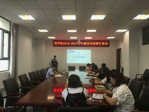 6月13日上午,药学院召开2016-2017学年辅导员述职交流会,学院党政领导及全体专兼职辅导员参加此次会议,药学院党委副书记金晓琴主持会议。