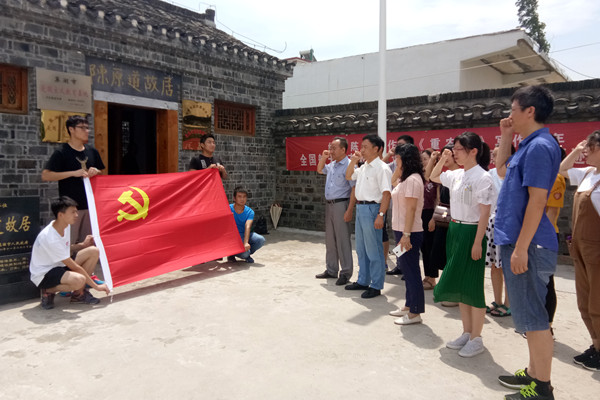 当日上午10:30,志愿队抵达陈原道故居进行参观学习,通过了解先烈的革命奋斗史,观看相关资料照片和烈士遗物,对其短暂而光辉的一生做出深刻认识。这不仅是一次革命教育活动,更是红色文化的传承与升华。最后,全体党员在庄严的党旗前高举右拳,重温入党誓词,接受革命精神的再度洗礼。