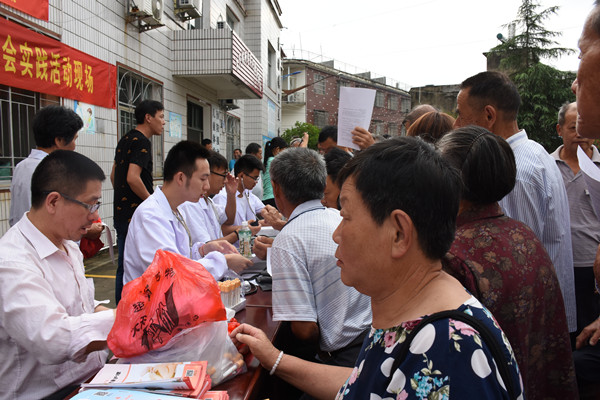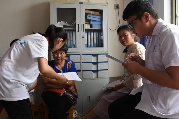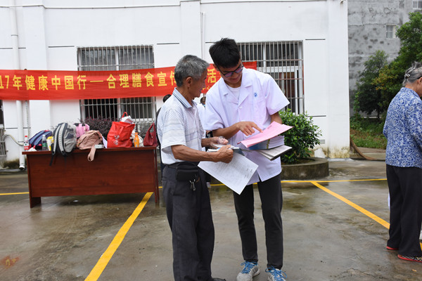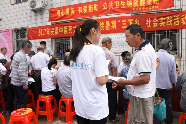 7月4日上午,团队在太湖县中医院的协助下深入乡村,经过一个多小时的跋涉到达天华镇中心卫生院,开展一系列医疗社会实践服务活动。团队成员按计划开展活动,为当地居民提供量血压,宣传夏季养生知识,开展调研等服务,并辅助医护人员完成体检等医疗工作。在当地居民和工作人员的配合下,宣传和调研工作顺利进行,提高了团队成员对当地医疗环境的认识,了解了当地居民对中医药文化的知晓率。之后,团队成员深入病房,服务住院病人,熟悉当地居民常见病,以便增强成员专业知识,更好地完善本次实地调研。