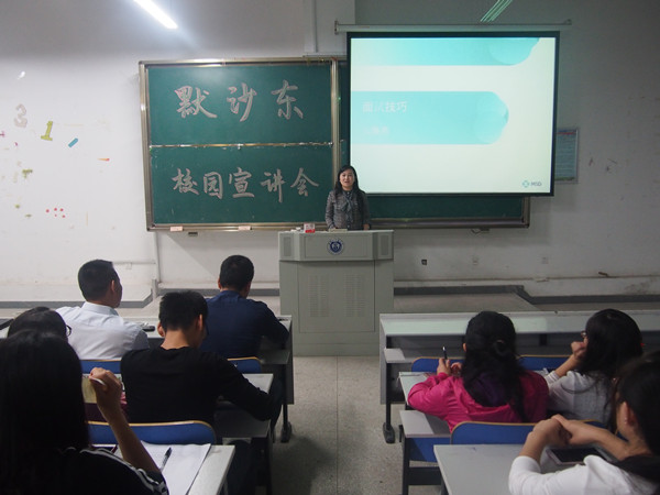 随后,张海燕向同学们介绍面试技巧。她首先提出“面试面什么,面试怎么面”等问题和现场学生讨论,由此引出面试四大核心能力要求,即坚守公司价值观和准则、赢的精神、学习能力、人际关系敏感度;并结合毕业生面试的案例指导同学们学习面试的有效方法、技巧和关键原则,传授经验。