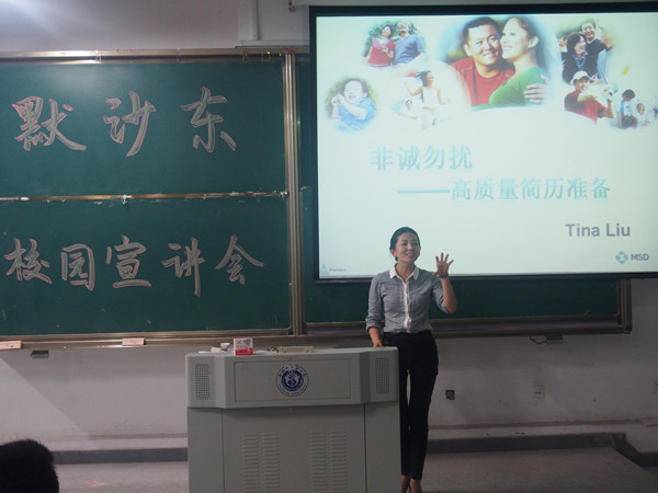 9月25日,药学院邀请默沙东(中国)有限公司在教学楼A112举行职业指导讲座暨2017年校园宣讲会。默沙东(中国)有限公司江苏区分公司人力资源部经理Tina,安徽区销售总监张海燕等一行人为药学院院毕业生开展职业指导讲座。药学院党委副书记金晓琴、就业工作秘书汪媛及数百名同学参会,金晓琴主持活动。