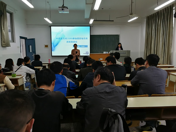 生物化学与分子生物学教研室主任朱洁做题为“中药复方对COPD肺血管舒张作用的机制研究”的学术报告。朱洁结合自身的科研经历给大家讲述了科研选题思路,并具体从离体实验、动物实验和细胞实验分别介绍了中药复方对COPD肺血管舒张作用的机制研究情况。