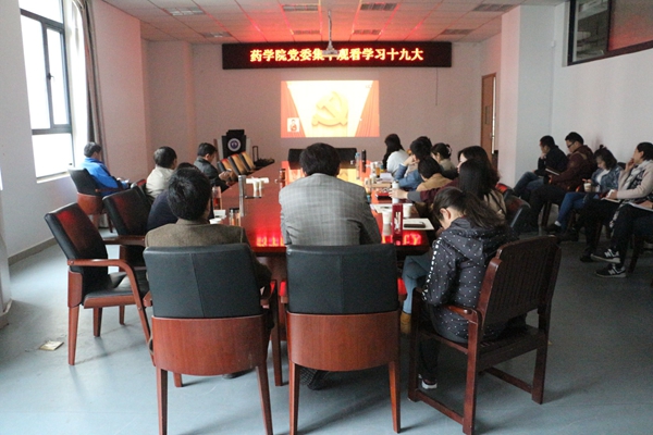 金秋十月,中国共产党第十九次全国代表大会于北京隆重开幕。为积极响应学校号召,学习十九大精神,10月18日上午9:00,药学院于313会议室举办“药学院党委集中观看学习十九大”活动。此次活动由院党委书记吴达武主持,学院各党委委员、支部书记、系主任以及办公室成员共同观看。