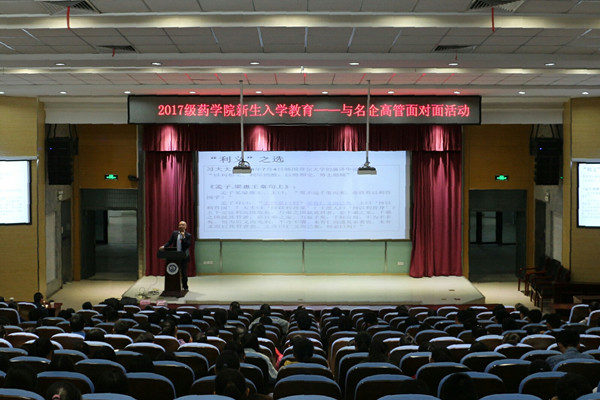 为了帮助学生们明确就业目标,完善职业规划,10月23日下午,药学院2017级新生入学教育――与名企高管面对面活动在教学楼A114顺利举办。由默沙东中国副总裁、中国药科大学、南京中医药大学兼职教授吴斌主讲,药学院党委副书记金晓琴、辅导员汪媛、王魁麟及2017级药学院全体新生参加活动。