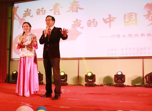 医药信息工程学院党政领导、全体行政人员、老师代表、全体辅导员和2017级全体新生出席了此次晚会。