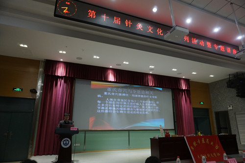 11月27日,由校团委、针灸推拿学院(康复医学院)主办,大学生针灸学社承办的我校第十届针灸文化月首场活动暨专题讲座在少荃湖校区A114教室隆重召开,针灸推拿学院(康复医学院)院长唐巍、校团委副书记叶兰兰、校第二附属医院老年病一科主任俞红五、针灸推拿学院(康复医学院)分团委副书记齐亚军以及大学生针灸学社全体会员和针灸学专业部分学生代表出席活动。
