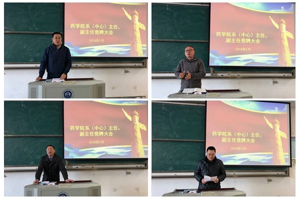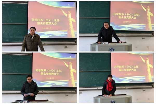 各系各中心现任主任、副主任依次进行了述职汇报。述职内容主要包括在任期间履行本岗位职责情况,在人才培养、科技创新、学科建设、社会服务等方面所取得的突出业绩以及工作中的不足和需要提高的方面。随后,参加新一轮主任、副主任竞聘的竞聘人员依次上台竞聘。各竞聘人介绍了个人基本情况、竞聘优势并重点阐述了自己今后的工作思路和打算。述职和竞聘发言结束后,全体参会人员对现任主任、副主任进行民主测评,对参加新一轮主任、副主任的竞聘人员进行投票推荐。民主测评和民主推荐在药学院党政领导班子的监督下完成,严格遵守公平公正原则。