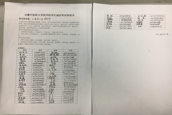 会上,各班级辅导员或班委成员再次宣读并强调了《学生手册》中关于考试纪律的相关规定及违反纪律学生的处理办法,并宣讲诚信是中华民族的传统美德,是每个人的立身之本、成功之道,养成严守规则,恪守诚信的良好习惯对同学们自身的成长与发展大有裨益。药学院各班级的广大同学们也积极发言,并纷纷表态要严格要求自己,坚决抵制不诚信的考试行为,以良好的考风、端正的态度迎接即将到来的期末考试。最后,同学们在诚信考试承诺书上郑重签字。
