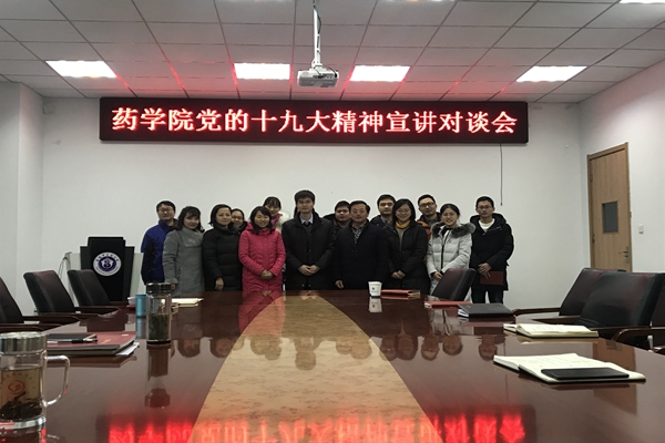 1月24日上午,药学院开展党的十九大精神宣讲对谈会,会议特邀中共安徽省委党校董博文老师主讲。药学院党政领导出席宣讲对谈会,学院党委成员、各党支部各党支部书记以及全体辅导员参加会议,对谈会由药学院党委副书记金晓琴主持。