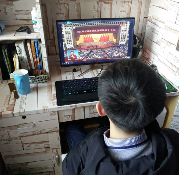 3月5日上午,学院全体行政人员在B7-546集体收看全国人大一次会议开幕会,听取李克强总理作政府工作报告。3月3日,新学期伊始,已到校同学根据学院组织安排,于B7-438集中收看全国政协十三届第一次会议。各班级也纷纷按照学院要求,第一时间开展学习,认真领会“两会”精神,其中16药管班还开展“两会”开幕会观后感撰写活动。