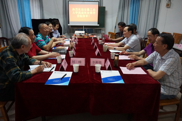 魏守建首先对安徽工业大学各位领导的到来表示热烈欢迎。他向客人详细介绍了我校离退休工作处组织机构、党支部标准化建设、中心组培训学习、落实“三会一课”、加强革命传统教育与警示教育情况。董漪向来宾介绍了我校老年大学日常管理与工作开展情况。