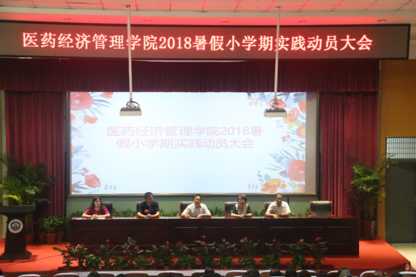 6月28日,医药经济管理学院召开2018年暑假小学期实践动员大会,学院副院长丰志培,经济系主任倪飞,管理系主任李德勋,经济学教研室教师陶群山等出席本次动员大会。学院2016、2017级全体学生参加了动员大会。会议由教学办公室负责人张恬恬主持。