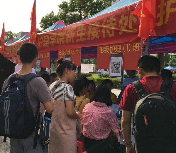 本次护理学院迎新工作,共有来自院学生会、各班级70名志愿者参与。早在新生报到前数日,学院即对迎新具体工作流程进行了统一规范,对志愿者进行了动员和培训。当日上午7时,志愿者们便分批次前往校门口迎接新生至学院报到处,引导新生独立完成报道、用品领取、宿舍入住等流程。迎新现场专门设立家长休息区,为新生家长提供服务。同时,院学生会特筹备了微信朋友圈照相板、气球送祝福等活动,以供新生和家长留念。