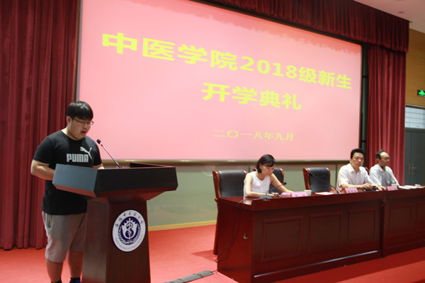 典礼议程在国歌声中正式开启。首先,董昌武代表学院全体师生致欢迎词,提出新生需要夯实专业基础,精专博览,注重创新,勇于探索。学院临床基础系主任张红梅代表教师发言,以“立德树人”为总目标,对新生提出殷切期望。学院在校生与新生代表分别发言,从校园生活及专业学习两方面发表切身感悟。