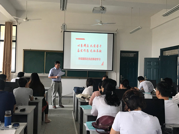 全体教师一起学习了李保国同志先进事迹,学习他心系群众、扎实苦干、奋发作为、无私奉献的高尚精神,自觉以李保国同志为标杆,不断加强人格修养,切实做到爱岗敬业、立德树人。