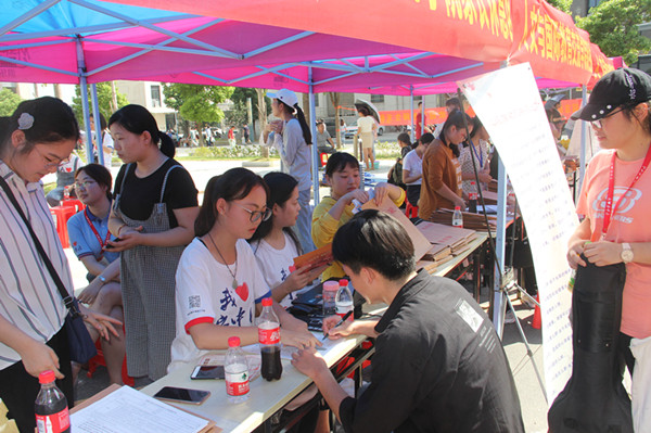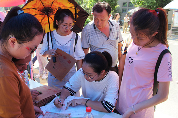 为配合学院的迎新工作,协助学院做好迎新服务,学院学生第一党支部的9名党员同学组成的党员先锋队在烈日骄阳下忙前跑后,热情地迎接来自各地的新生及家长。核对新生信息,发放各种材料,积极地为各位新生及家长解疑答惑。面对奔波而来的家长们,他们也会适时地递上一瓶水,送去夏日的清凉,也收获了家长们的认可和称赞。