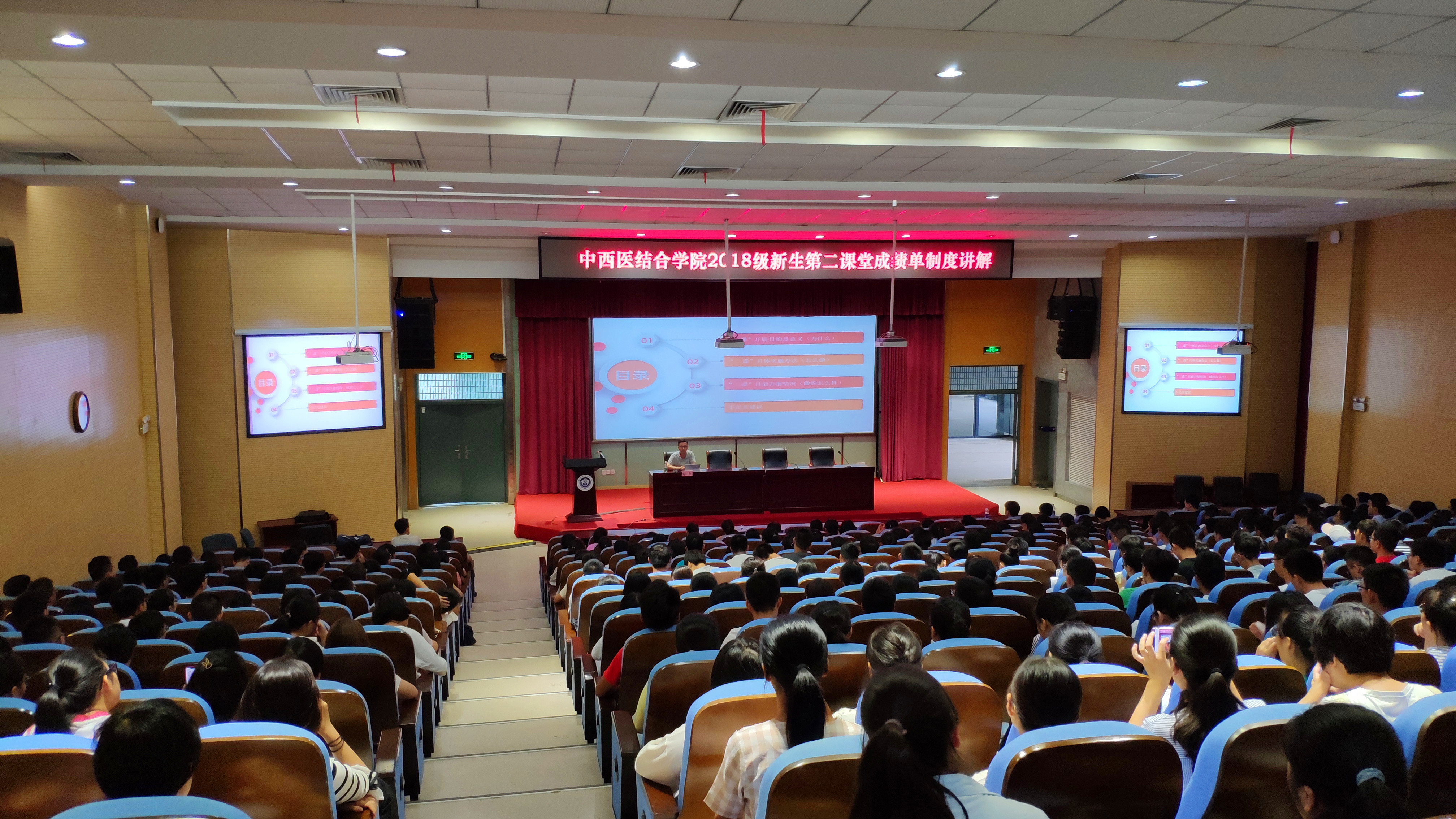 为扎实做好新生入学教育工作,引导新生尽快转变角色、适应新环境,9月6日下午,中西医结合学院在少荃湖校区A114报告厅继续开展2018级本科生入学教育系列活动,校团委素质拓展部彭程主任作了关于“安徽中医药大学第二课堂成绩单制度讲解”的讲座,讲座由新生辅导员董琪主持,2018级全体新生及辅导员聆听了讲座。