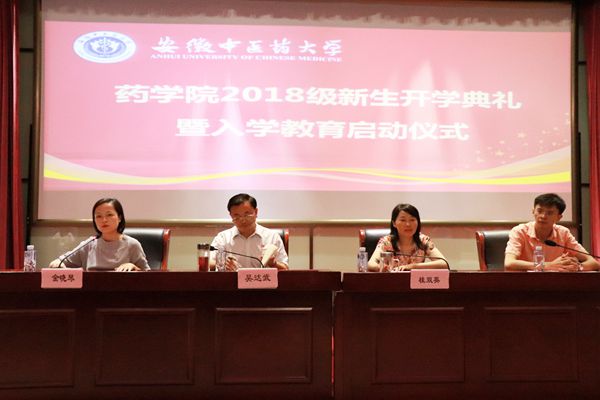 近日,药学院在少荃湖校区A114报告厅隆重举行2018级新生开学典礼暨入学教育启动仪式。药学院党委书记吴达武,院长桂双英,教师代表彭灿副教授,办公室相关老师,全体辅导员、2018级全体新生以及部分在校生代表出席了本次大会。大会由,党委副书记金晓琴主持。