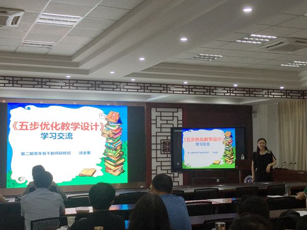 徐金菊以《五步优化教学设计》为主题,从五步优化教学设计和个人感悟两个方面跟在座老师进行了交流。分别从课程概述、课程主逻辑、五个关键词三方面说明,一步步展示如何做好教学设计,并通过与老师们的互动,形象展示了师生互动的教学模式的教学效果。韩茹也以亲身实例说明了“五步优化”的优势。