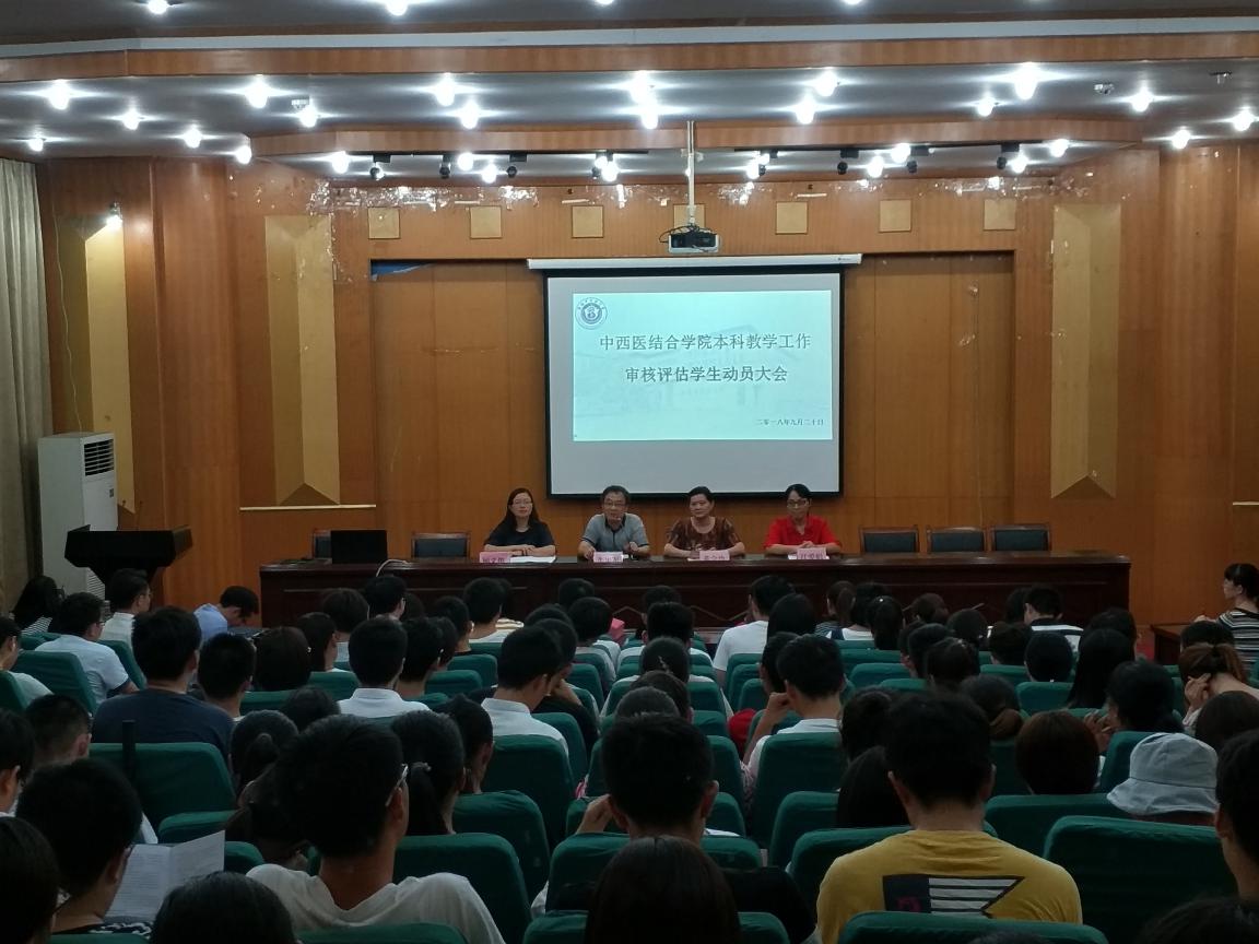 为保证学院全体学生以饱满的热情、积极向上的精神风貌迎接本科教学工作审核评估,确保评估工作顺利有序、高效地开展,中西医结合学院分别于9月18日和9月20日在少荃湖校区和梅山路校区召开本科教学工作审核评估学生动员大会。学院党委书记牛忠军、院长黄金玲、党委副书记顾义俊、副院长江爱娟、全体辅导员及所有班级学生干部、学生党员和学生会干部出席大会。