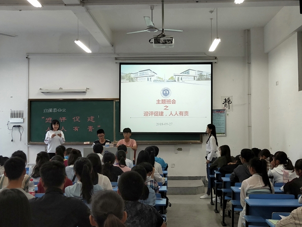 为全面落实学校迎接审核评估学生工作专项动员会精神,宣讲审核评估知识,明确工作任务,营造良好氛围,9月20日-10月2日,医药经济管理学院各班级召开了 “迎评促建,人人有责”主题班会,旨在加强学风建设,积极动员学生,以良好的精神面貌迎接本科教学工作审核评估。