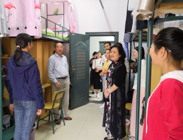 为迎接教育部本科教学审核评估,加强对同学们的学风建设,近日,护理学院党委书记吴成长,党委副书记许晓燕带领辅导员开展了听课、看课及新区和西区宿舍走访活动。