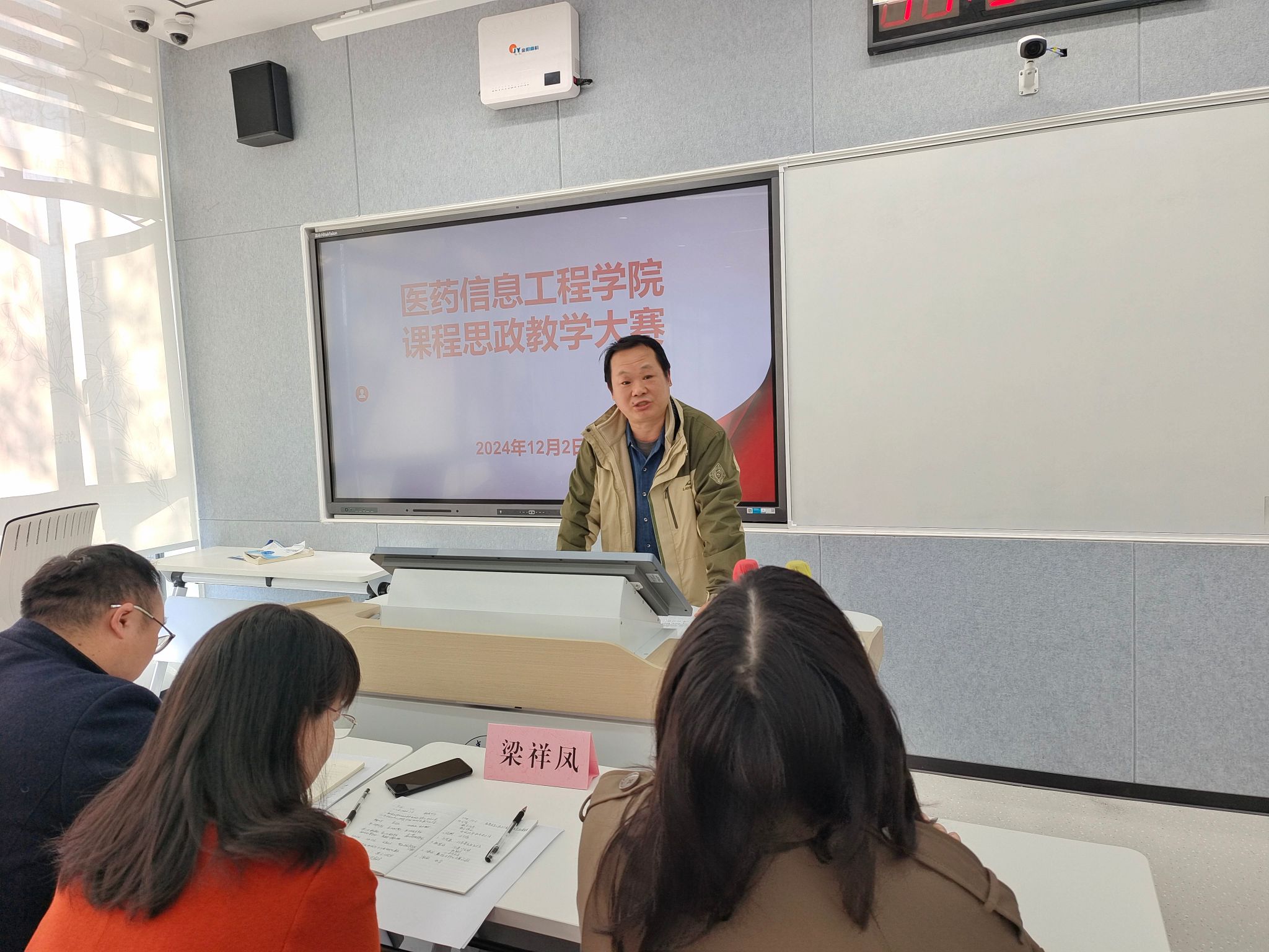 12月2日,医药信息工程学院举办第二届课程思政教学大赛,马克思主义学院梁祥凤教授到场指导,学院党委书记高霞,学院党委委员、副院长阚峻岭及各系主任,学院教学督导担任评委,学院全体教师观摩了比赛。