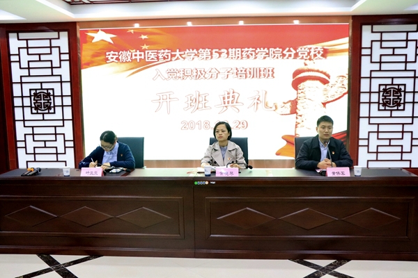10月29日下午,药学院在沁馨堂举行药学院分党校第53期入党积极分子培训班开班典礼。校团委副书记叶兰兰,药学院党委副书记金晓琴出席了本次开班典礼,典礼由本期培训班班主任黄伟军主持,全体学员们参加了此次典礼。