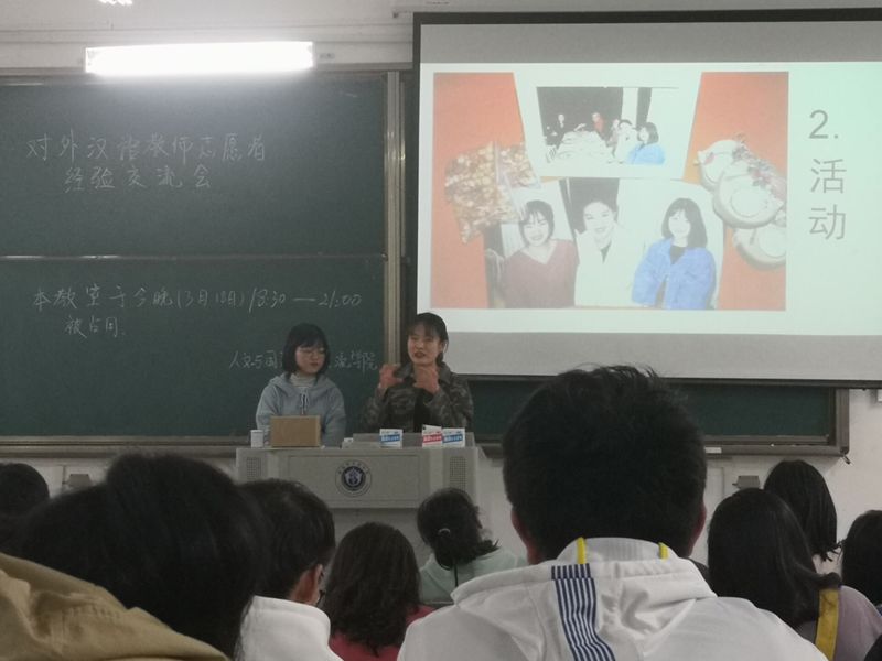 3月18日,人文与国际教育交流学院2017级、2018级汉语国际教育专业学生齐聚A102教室,参加了国际汉语教师志愿者经验交流会。本次交流会是跨年级开展主题班会教育及学生发展教育的一次实践创新,由辅导员周政和欧阳菁菁主持,16级汉语国际教育专业余子婷、时慧同学参与汇报交流。