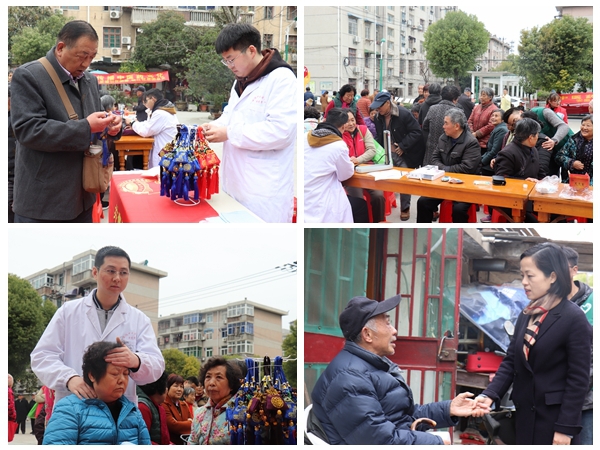 3月22日,药学院党委副书记金晓琴、药学院志愿者以及国医堂的医生来到七里塘社区皖江社居委开展“雷锋月”系列活动。活动过程中,国医堂的医生们对社区居民进行了义诊和春季流行疾病的预防、食品安全问题的相关科普宣讲,宣讲结束后给居民们分发了常见药品并耐心地为居民们讲解过期药的危害。药学院志愿者们则热情地为居民们讲解中药标本和饮片的相关知识,并为居民们带来了精彩而具有中医特色的五禽戏片段表演,社区居民对志愿者的表演赞不绝口。表演后,志愿者们配以展板向社区居民生动的讲解五禽戏的相关知识并进行了简单的现场教学。随后在社区工作人员的带领下,大家拜访了留守老人,给老人们送去了慰问品和关怀,社区里处处洋溢着浓浓的暖意。