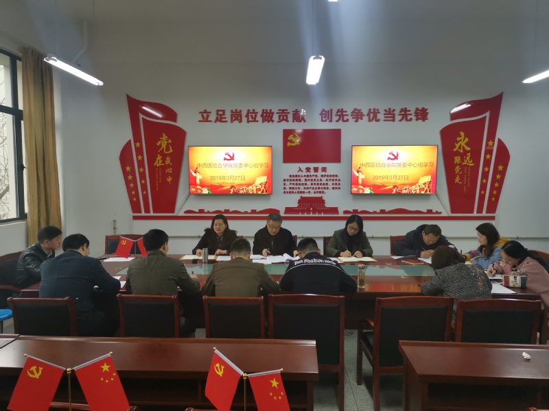 3月27日下午,中西医结合学院党委中心组召开2019年第3次理论学习会议。会议由院党委书记牛忠军主持,中心组成员参加学习会。
