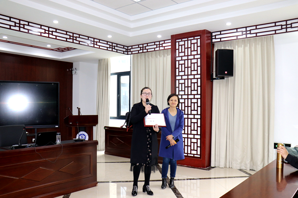 大会最后的提问环节,同学们踊跃发言,分别提出了“实习就业时工作内容有何差异”、“暑期是否可以提前安排企业见习活动”、“如何解决考研和就业之间的矛盾”、“人力资源工作人员在面试时最看重的应聘者品质”等问题,徐守娟女士均耐心作了详细解答。最后,金晓琴代表药学院为徐部长颁发药学院“职场导航”特聘导师聘书。