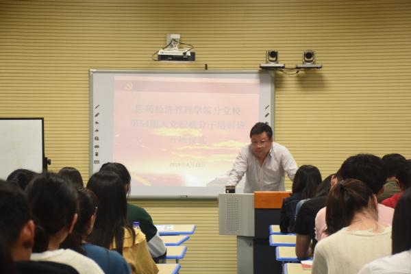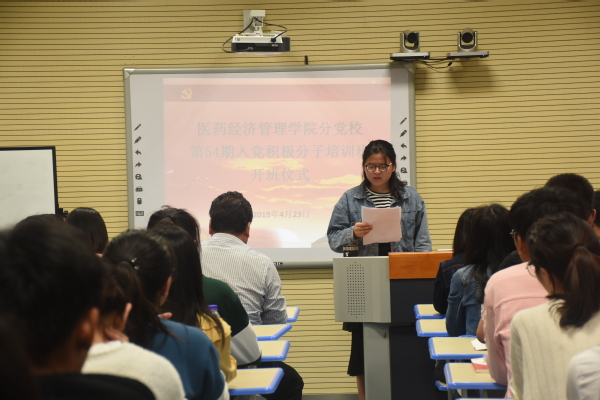 4月23日晚,医药经济管理学院举行分党校第54期入党积极分子培训班开班仪式,院党委书记沈少蕾,学院分工会主席、学生二支部书记沈晨,分团委书记、学生三支部书记范思敏参加开班仪式。开班仪式由班主任孙孝涧主持,16、17、18级共计67名入党积极分子参加开班仪式。