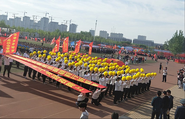 4月18日上午,运动会开幕式进行中,中西医结合学院学院方阵队铿锵有力的口号,整齐划一的步伐,无不令人喝彩。方阵队先后变换出“1959-2019”、“我爱安中”字样,齐声高呼:“我爱安中,生日快乐”,以庆贺学校60周年生日快乐。