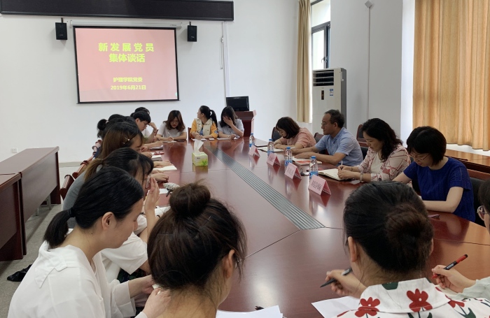为进一步加强对新党员的培养教育,6月21日下午,护理学院党委在会议室进行了新发展党员集体谈话。学院党委书记吴成长,党委副书记许晓燕及全体新发展党员参加谈话。