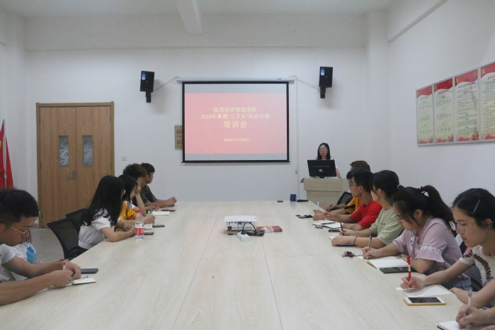 6月28日,医药经济管理学院召开2019年暑期“三下乡”社会实践培训会。学院分团委书记范思敏以及参加本次实践的学生参加了会议。