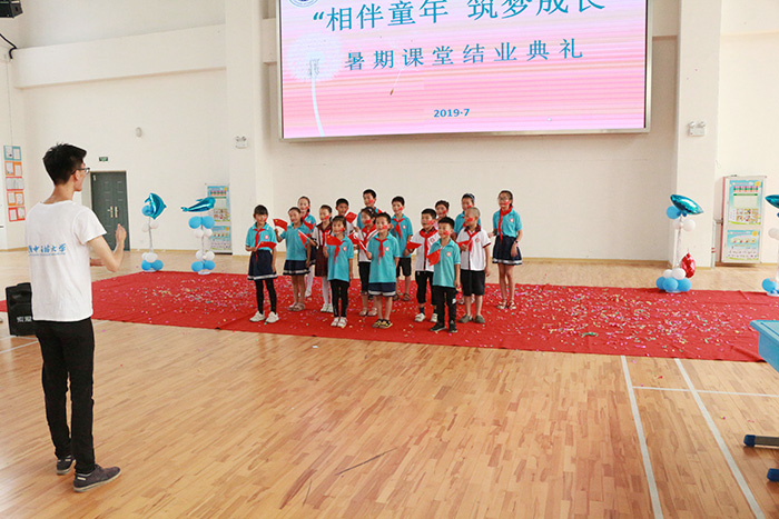 在志愿者们的精心组织和排练下,参加本次暑期课堂的同学们进行了汇报演出。他们进行了篮球、朗诵、合唱、太极、街舞、民族舞等节目表演,展现出自己多才多艺的一面。最后,志愿者们集体合唱,并献上提前制作好的告别视频,带着真诚和不舍,用自己最好的一面和孩子们说再见。
