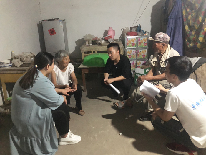 经过四个多小时的车程,“天使之爱”爱心医疗团于傍晚抵达目的地杨庄乡。草草解决了晚餐之后,同学们便开始投入到“三下乡”实践活动中。经商讨,同学们分成五组队伍,分别前往杨庄乡困难群众数十户。走访中,护理学院学生与当地群众热心交谈,询问其家庭基本情况、身体状况和生活状况。有一位年近90岁的老人是当地的困难户,他终身无儿无女也无伴。老人表示他在生活中只有两条小狗作伴,生病时无人照料,因此非常感谢党和政府的好政策,让老人能够看得起病,看得好病,真正享受到老有所养、老有所依。之后,同学们帮助老人整理屋子,在即将离开时,将随行带来的日常用品和衣物赠送给老人,并祝福老人健康长寿。走访的多户人家纷纷对护理学院学生们的到来感到惊喜和感动,一直表达他们浓浓的谢意。