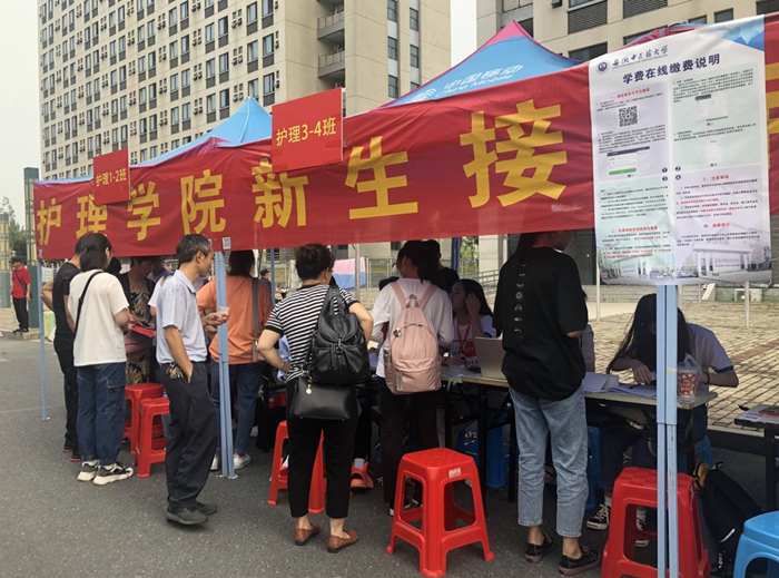 本次护理学院迎新工作,共有来自院学生会、各班级60名志愿者参与。在新生报到前数日,学院对迎新工作的具体流程进行了统一规范,对志愿者进行了动员和培训。当日上午7时,志愿者们便分批次前往校门口迎接新生至学院报到处,引导新生独立完成报到、PU的注册、公寓用品的领取、宿舍入住等流程。迎新现场专门设立家长休息区,为新生家长提供茶水休息服务。