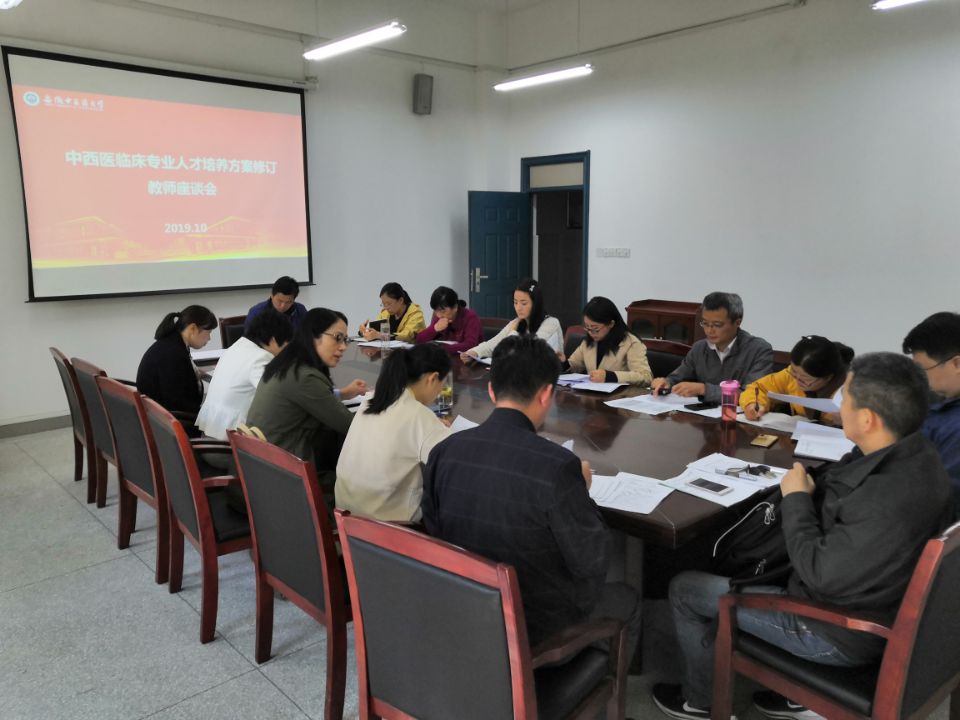 为深入贯彻落实全国教育大会和新时代全国高等学校本科教育工作会议精神,适应高等教育发展的新形势和新要求,根据学校教务处人才培养方案修订的统一部署,10月17日下午,中西医结合学院召开2019年中西医临床医学本科专业人才培养方案修订教师座谈会,中西医结合学院、中医学院、针灸推拿学院相关课程负责人和授课教师参加了座谈会,会议中西医结合学院副院长江爱娟主持。