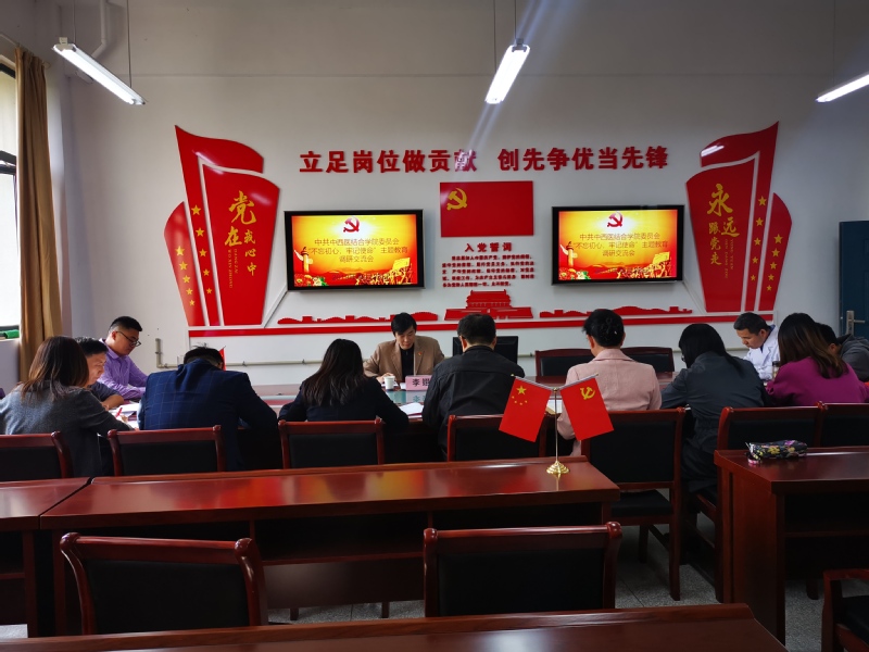 10月23日下午,中西医结合学院党委中心组召开2019年第15次理论学习会议,开展“不忘初心、牢记使命”主题教育之“不忘初心担使命,从严治党守规纪”专题学习研讨,并交流此次主题教育调研成果。会议由学院党委副书记顾义俊主持,校“不忘初心、牢记使命”主题教育第三巡回指导组李翊同志到会指导。