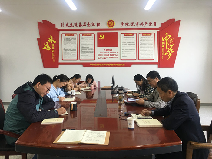 10月28日上午,针灸推拿学院党委召开“不忘初心、牢记使命”主题教育第十次集中学习研讨。会议由针灸推拿学院党委书记尹必武主持,学院党委中心组成员参会。