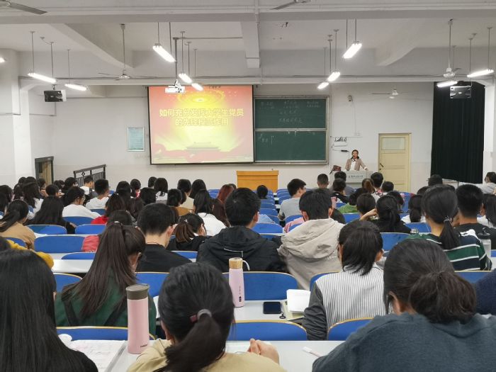 黄莉结合学生工作及习近平对青年大学生的寄语要求,就“如何充分发挥大学生党员的先锋模范作用”分享了自己的学习心得。她表示大学生党员要仔细研读《习近平关于“不忘初心、牢记使命”重要论述摘编》,提高理论修养,增强政治品格的培养,充分发挥先锋模范作用。(张旭、汪芳萍/文图 董昌武/审核)