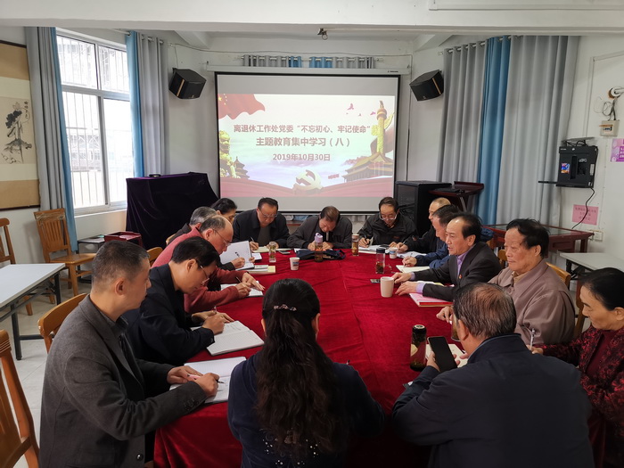 根据离退休工作处党委“不忘初心、牢记使命”主题教育学习进度安排,10月30日上午,离退休工作处党委召开了“不忘初心、牢记使命”主题教育第八次集中学习会。离退休工作处党委书记、处长魏守建及全体分党委委员、五个党支部书记、关工委全体委员参加了会议。会议由魏守建主持。