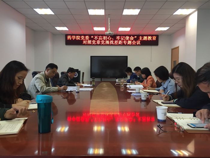11月6日上午,药学院党委召开“不忘初心、牢记使命”主题教育对照党章党规找差距专题会议。学校第四巡回指导组成员、人事处师资科科长戈庆康出席专题会议。药学院党政领导班子成员、党委委员、各党支部书记参会,会议由学校党委常委、药学院党委书记吴达武主持。