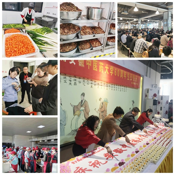 精心筹备,设计“校庆生日蛋糕”。总务处组织长快餐饮服务公司精心设计制作“庆祝安徽中医药大学60周年华诞”大型蛋糕,放置在食堂二楼大厅,让校友在校庆当天分享感受60周年校庆喜悦的同时,还能体会到重回母校的温暖。