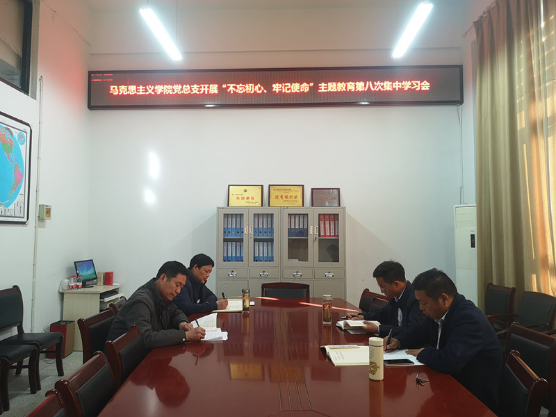 11月15日下午,马克思主义学院党总支召开“不忘初心、牢记使命”主题教育第八次集中学习会。学习《习近平关于“不忘初心、牢记使命”重要论述选编》之《理想信念是中国共产党人的政治灵魂》。学院党总支委员参加会议,会议由马克思主义学院党总支书记胡卿主持。