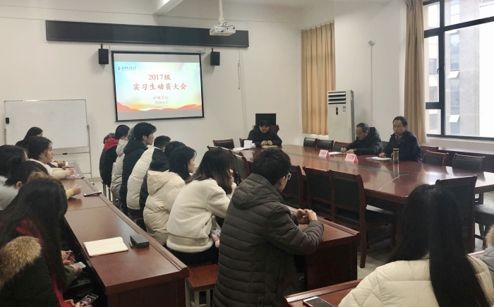 1月3日,护理学院在惟是楼447会议室召开2017级学生实习动员大会。学院党委书记吴成长、院长方正清、实习秘书、实习班级辅导员、2017级各班班长及各实习点队长参加了会议。