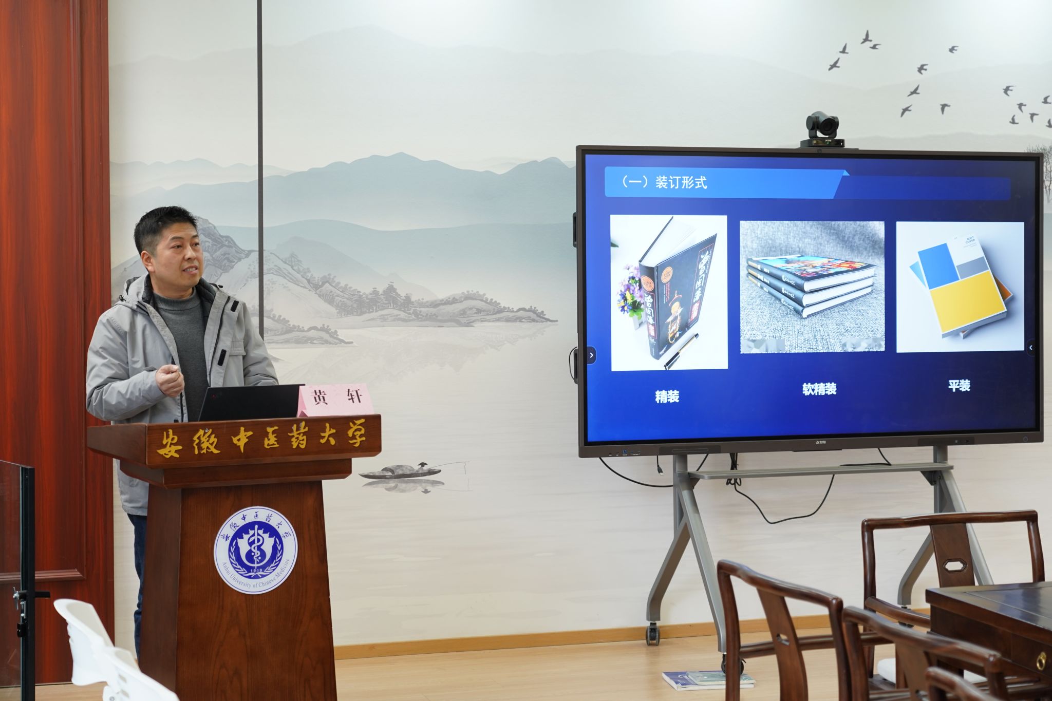 12月19日,人文与国际教育交流学院举办第11期“三名”论坛,本次讲座邀请安徽科学技术出版社融媒体中心主任黄轩作主题为“图书出版流程与编写规范”讲座。讲座由学院副院长张筱荣主持,安徽科学技术出版社副社长陈军一行及学院部分教师参加。